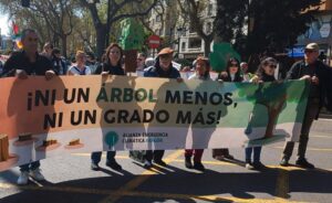 ANSAR tras la pancarta de la Alianza por la Emergencia Climática © ANSAR