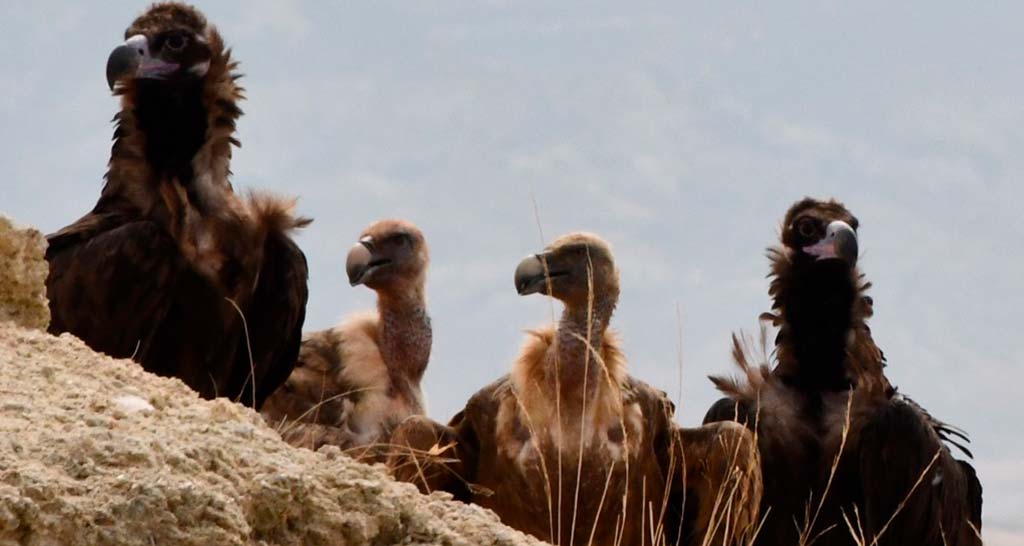 Las aves carroñeras son poco productivas, basan su estrategia reproductora en su longevidad. El quebrantahuesos —en peligro de extinción—, el buitre leonado —Régimen de protección especial— y el buitre negro —vulnerable—, suelen sacar un pollo por año, si todo va bien. El alimoche —vulnerable— puede llegar a sacar dos pollos si el año es propicio, pero en la mayoría de los casos también suele salir adelante un solo pollo.