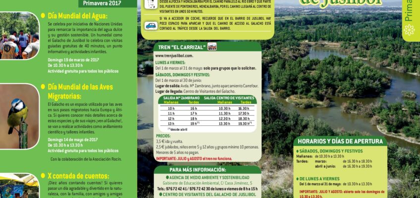 Se celebra por iniciativa de Naciones Unidas para remarcar la importancia del agua dulce y su gestión sostenible. Un humedal como el Galacho de Juslibol lo celebra con visitas guiadas gratuitas de 40 minutos, un punto informativo y actividades infantiles.