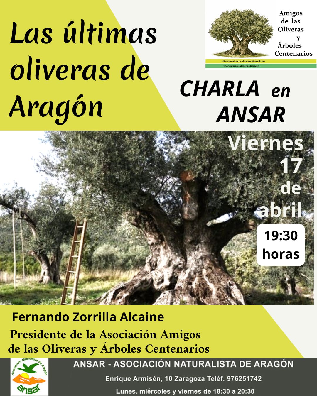 Fernando Zorrilla Alcaine, presidente de la asociación Amigos aragonesa de las Oliveras y Arboles Centenarios, viene el viernes 17 de abril a las 19:30 a hablarnos sobre ello.