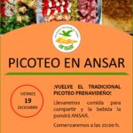 Queridos/as socios/as: Nos alegra informaros de que ya tenemos fecha prevista para el picoteo prenavideño. Nos juntaremos el 19 de diciembre, a las 20:00 horas en la sede de ANSAR. Cada uno trae algo de comer para compartir y ANSAR … Continuar