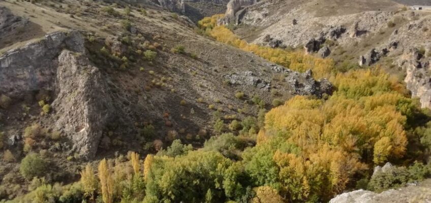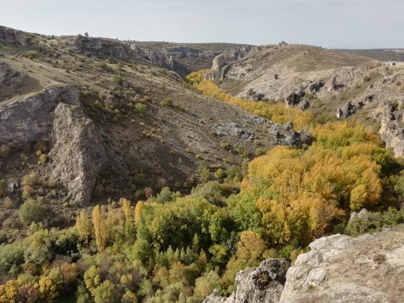 Saldremos a las 8 de la mañana desde el lugar habitual frente al Pasaje Ebrosa. Sobre las 10 llegaremos a Sigüenza donde haremos una parada para tomar café, y dejaremos tiempo para una breve visita a la ciudad. Desde allí nos desplazaremos a Pelegrina donde comenzaremos la excursión propiamente dicha. La excursión es corta y, en general, llana, pues sigue el curso del río, donde disfrutaremos de un paseo por los bosques de ribera -si todavía quedan hojas podemos disfrutar del colorido otoñal de chopos, cornejos o arces-. El único desnivel será la subida a la parte alta del cañón por donde realizaremos un tramo del recorrido, con espectaculares vistas de la Hoz y los meandros del río, y del pueblo de Pelegrina con los restos de su castillo. En un punto del cañón, si el otoño viene con lluvias, podremos ver la cascada del Gollorio, aunque es frecuente que se encuentre seca si no ha llovido.