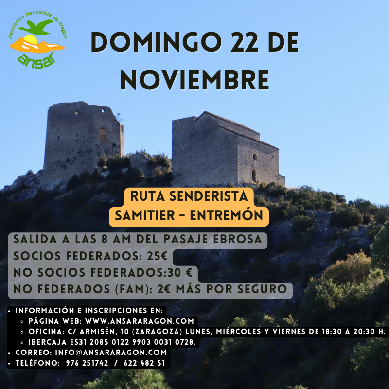 Inscripción y forma de pago: a través de la Web: https://www.ansararagon.com/ o en nuestras oficinas los lunes, miércoles y viernes de 18:00 a 20:30 horas en la C/ Enrique Armisén nº 10. Teléfono 976 251 742. Plazas limitadas.