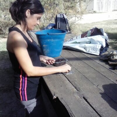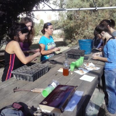 La jornada de puertas abiertas celebrada el 25 de octubre en el vivero de la Asociación contó con la presencia de un grupo de profesoras de enseñanza media. Realizaron la visita al vivero conociendo la labor que se desarrolla en el mismo y posteriormente procedieron a sembrar semillas de frutos de mirto y aligustre que se habían recogido y limpiado a lo largo de la mañana. Finalizó la actividad con una degustación de trenza de Almudévar y de moscatel de Encinacorva.