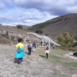 Luego nos acercamos a ver el Reloj Solar de Vadorrey, el más grande del mundo según la placa del título de récord Guinness colocada allí, su mástil se alza a una altura de 31 metros sobre una plaza semicircular y aprovechando un pequeño descanso, Juan Pablo nos dio las explicaciones correspondientes para entender su funcionamiento. En esta zona vimos un laurel hembra (Laurus nobilis), unos sisallos (Salsola vemiculata) pequeños arbustos que habían crecido allí de forma espontánea y también determinamos el tilo común (Tilia cordata) con pelitos rojizos en el envés y el fruto con costillas prominentes, ésta característica nos permitirá diferenciarlo de los tilos de la Avenida de la Independencia (Tilia x vulgaris) pues estos tienen pelitos blanquecinos y el fruto apenas acostillado.