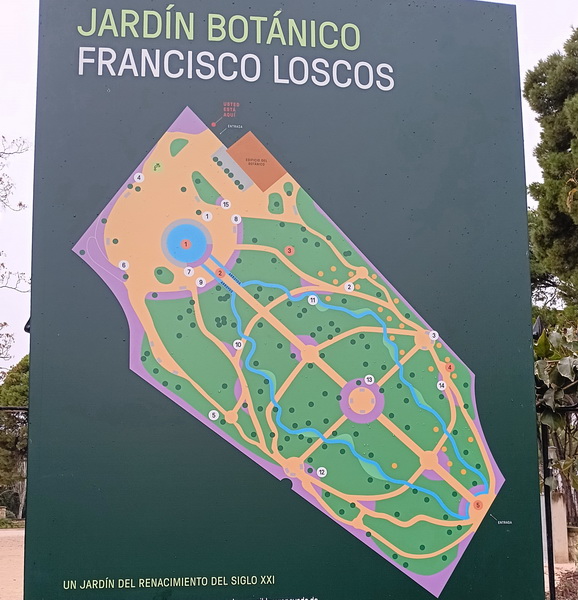 La primera impresión ha sido buena, el cartel de la entrada nos informa que vamos a ver un Jardín renacentista con varias áreas temáticas, como plantas alpinas, aromáticas y medicinales, comestibles, acuáticas y palmeral entre otras. Bien.