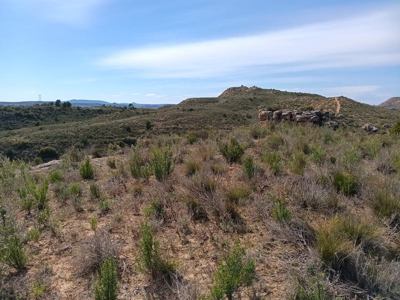 Es una zona de monte bajo con algunas sabinas negras, enebros y ocasionalmente algún pino carrasco y dominado en su composición por el romero, aliaga, ontina, Boleum asperum, Cytisus fontanesii, lastón y albardín en el fondo de las vales. Los suelos son de yesos, margas y sedimentos de ríos.