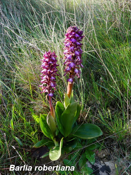El objetivo de esta salida era doble, ver la población de Barlia robertiana y visitar la zona de Caspe. Para ello salimos de Zaragoza a las 8:00 de la mañana en dos coches: Blanca, María, Olga, Pilar, Fermín, Isidro, Jesús y Larri. Nuestra primera parada es en Alcubierre, donde vamos a ver la población de Barlia robertiana. La planta está espectacular. Paramos después en un bar de Bujaraloz a tomar un pequeño almuerzo y un café. Nos viene a visitar Conchi, aunque ella no puede continuar con nosotros.